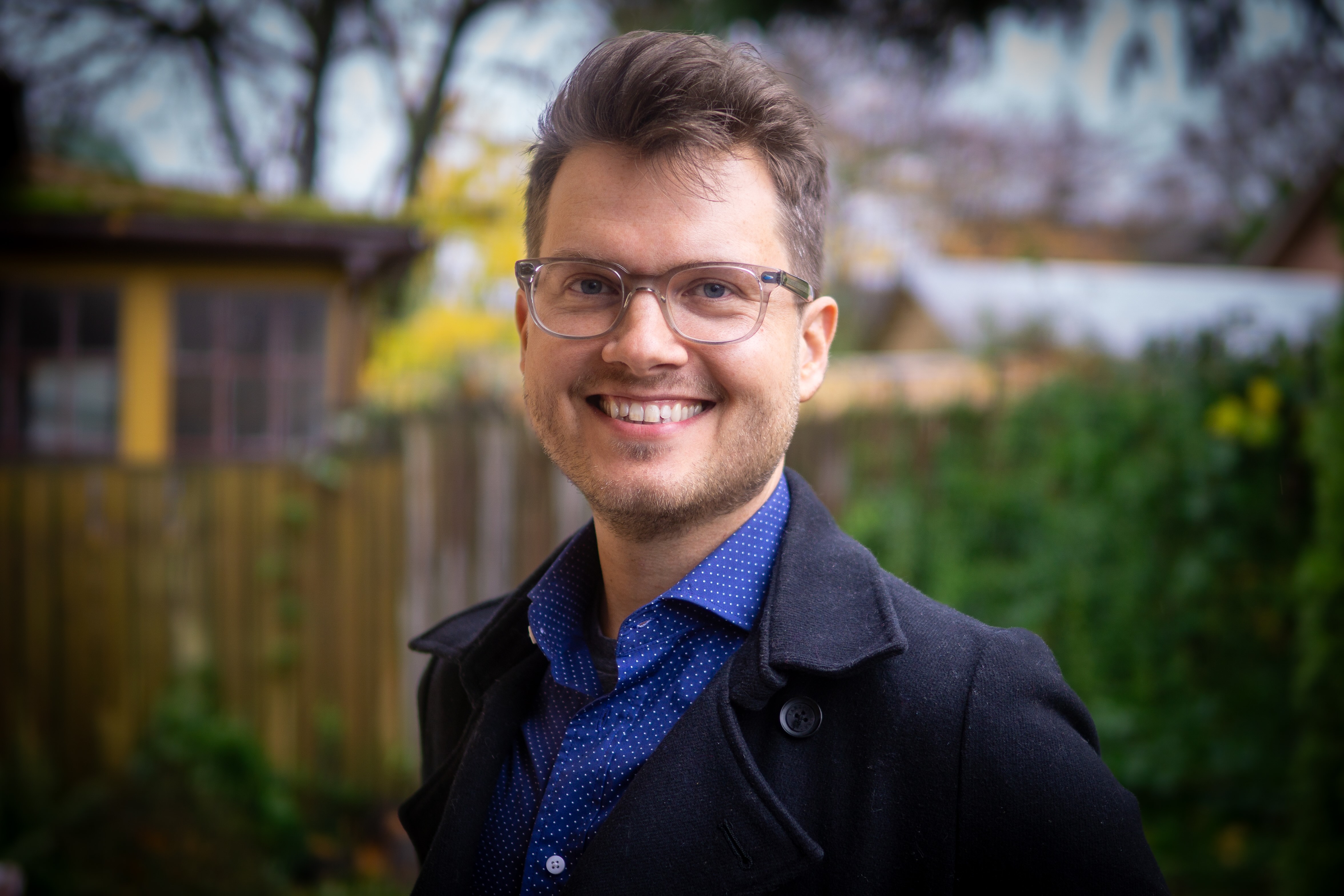 Photo credit to my wife Suzanne. Taken in the backyard of our NE Portland home on November 20, 2024. I spent a lot of time editing out individual cat hairs from my coat.